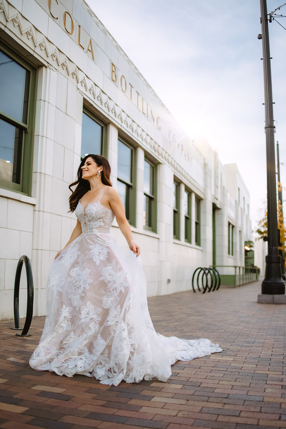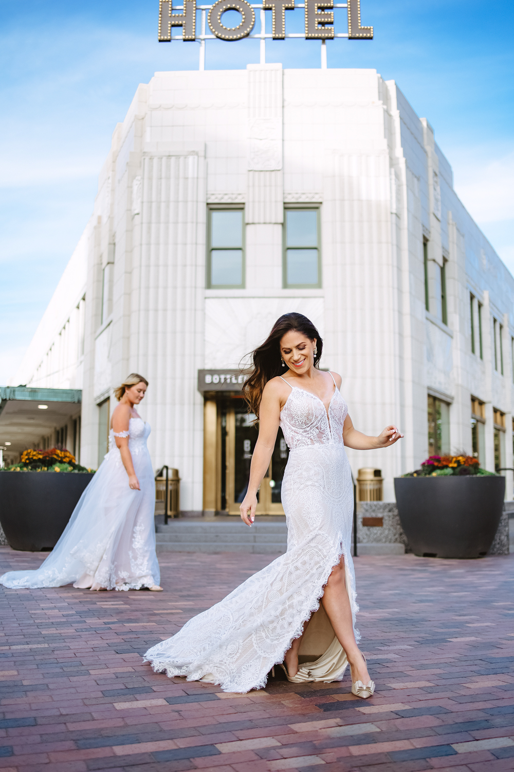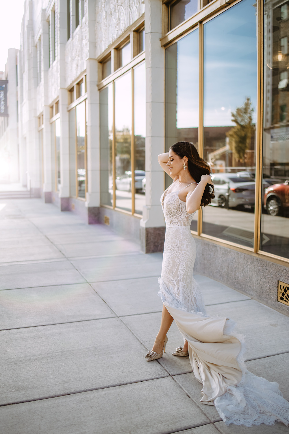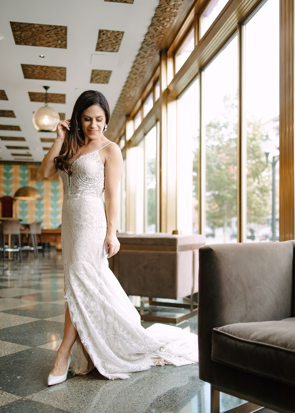 Looking for your “something blue?” Color-loving brides have a wealth of blue options to choose from, whether that blue is pale or a vibrant royal. Metallic shoes are another fun twist and way to jazz up your look. The sparkle and glitz really catch the eye, ultimately helping your look feel elevated.