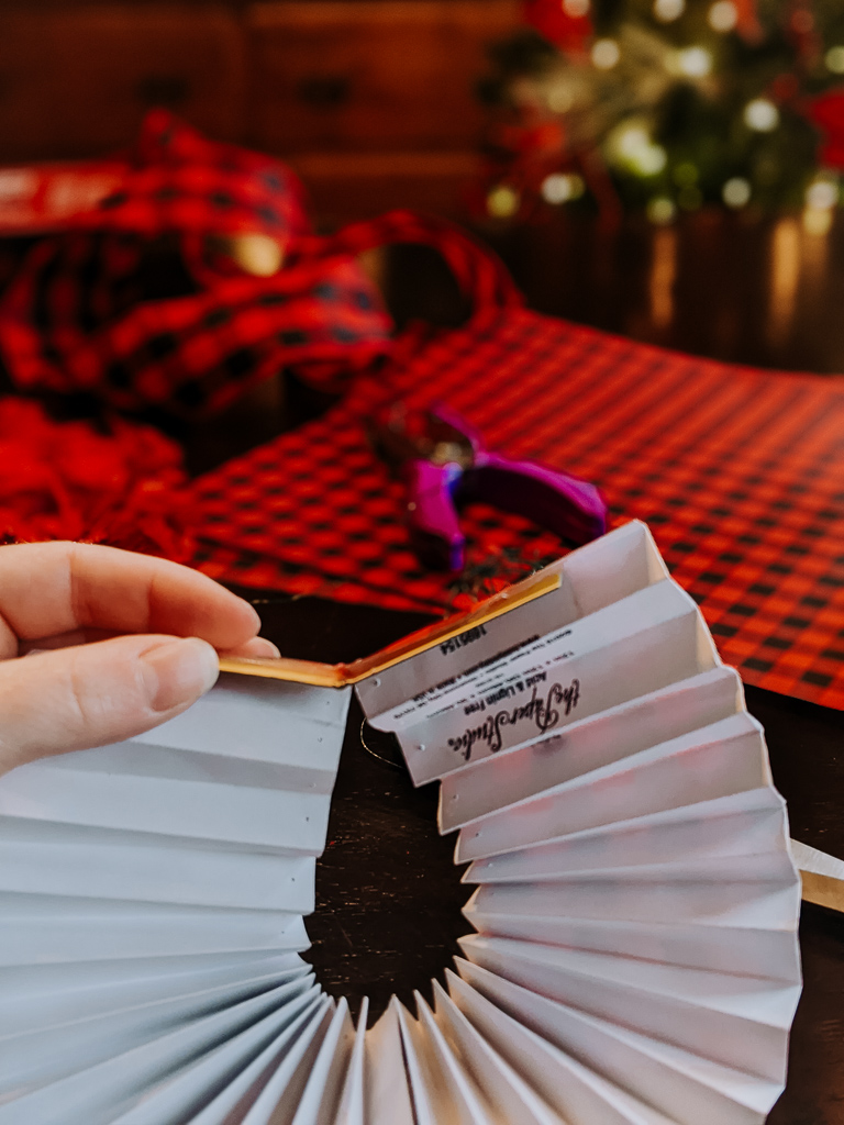 Pro tip: The most affordable way to get that “full” Christmas tree effect is to use a wide, wired ribbon. Ribbon is great for filling natural holes in your tree and covering a lot of surface area.