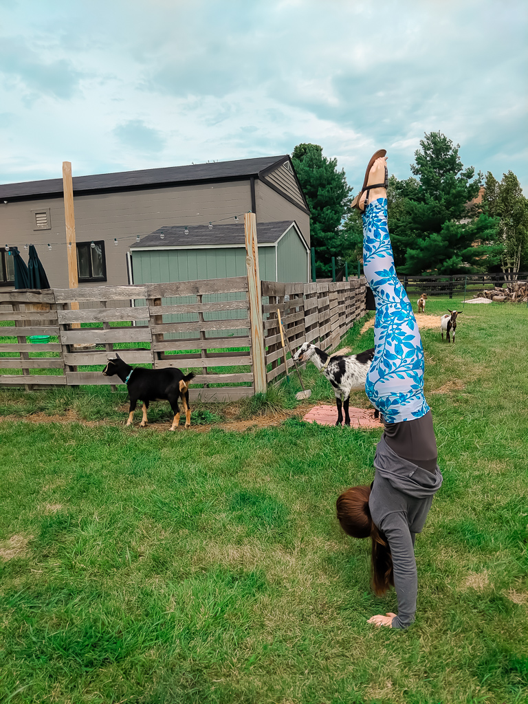You’re probably wondering what the heck is goat yoga? I was too – and that’s precisely why I had to try it! I’m no yogi. I’ve taken exactly one yoga class in my lifetime, but this session at Reverse the Kerrs Farm had no prerequisites. All you need is a sense of humor and a love of animals. Goat Yoga FAQs toward the end of this post.