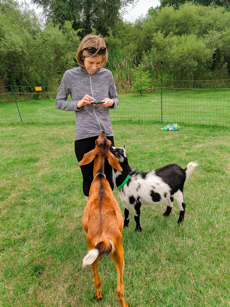 Goat yoga has been around for a couple of years, so I’m a bit late to the party. But this exercise craze is still going strong. In fact, it was perfect for a girls’ weekend! Consequently, I headed to Elgin, Illinois to give it a whirl with two of my closest gal pals.