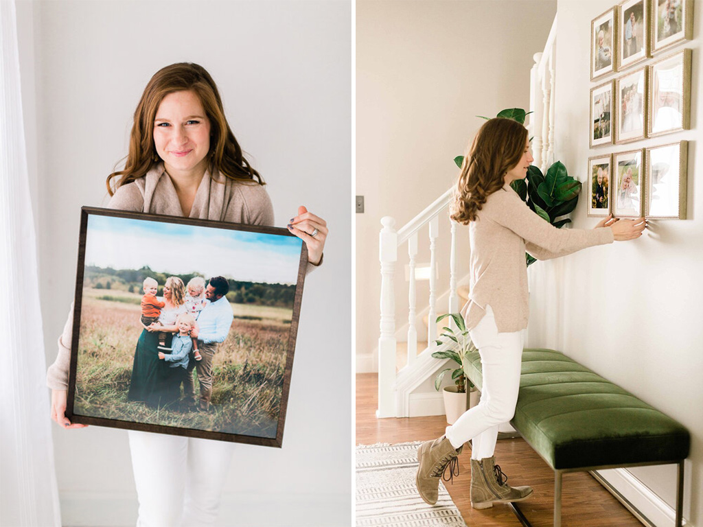 Does this process sound familiar? You snap some great shots, book a family photo session, and fall in love with those images. You might share a few pics on Facebook or Instagram. Maybe you print out a couple of 5x7s for a small frame on a bookshelf, but that’s where everything stops. Those stunning photos, the images that perfectly capture your family’s unique bond and connection sit wasting away on your computer. That’s why I sourced some tips from the pros. If you’re wondering how to decorate with family photos, you’ve come to the right place!