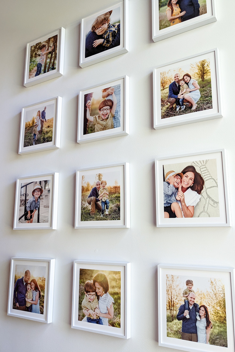 Go ahead and include that stellar group shot, the close up of your toddler’s chubby-cheeked grin, the romantic moment with your spouse, and your daughter’s dance among the wildflowers. You can choose four favorites or expand the concept all the way up to twelve images, like I did below.