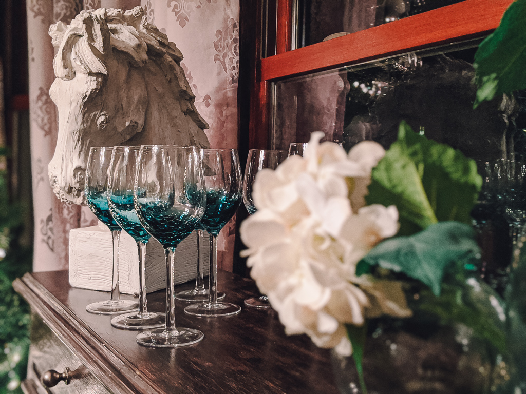 Roberts recommends a small, intimate group of 6-12. I wound up with nine people total, including my husband and myself. It was an ideal number. Why? You need seating with plenty of elbow room for a comfortable tasting. Also, consider that your table will begin to feel crowded once you have all the wine glasses, snacks, and notepads set up.