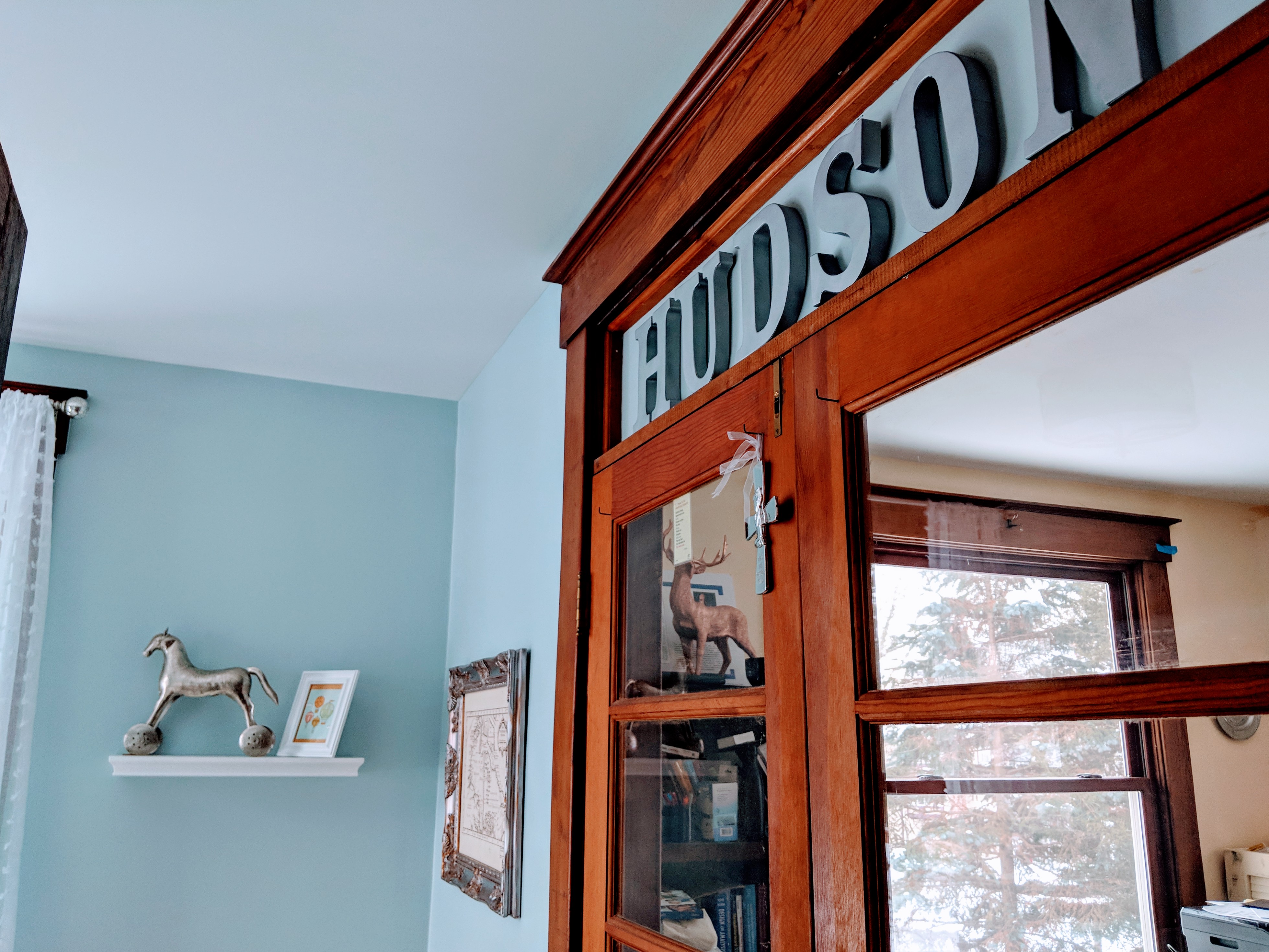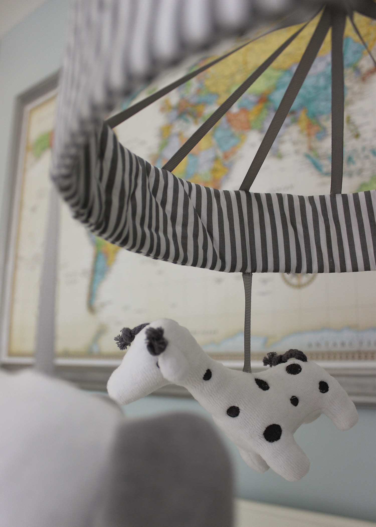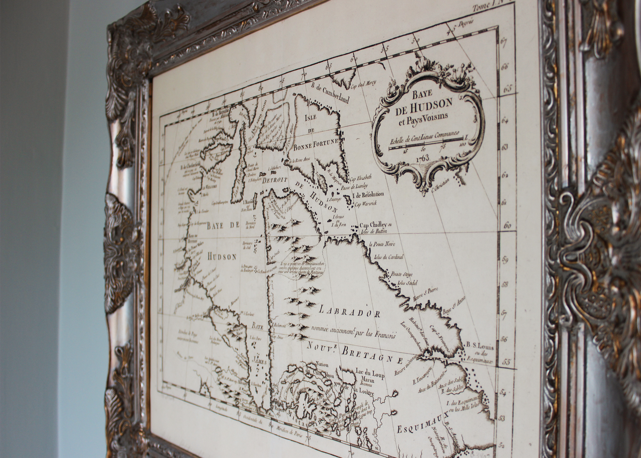 The final element—and a really meaningful one—is the framed map you see below. The old French image depicts Hudson Bay, perfect when your little one is named Hudson, right?!